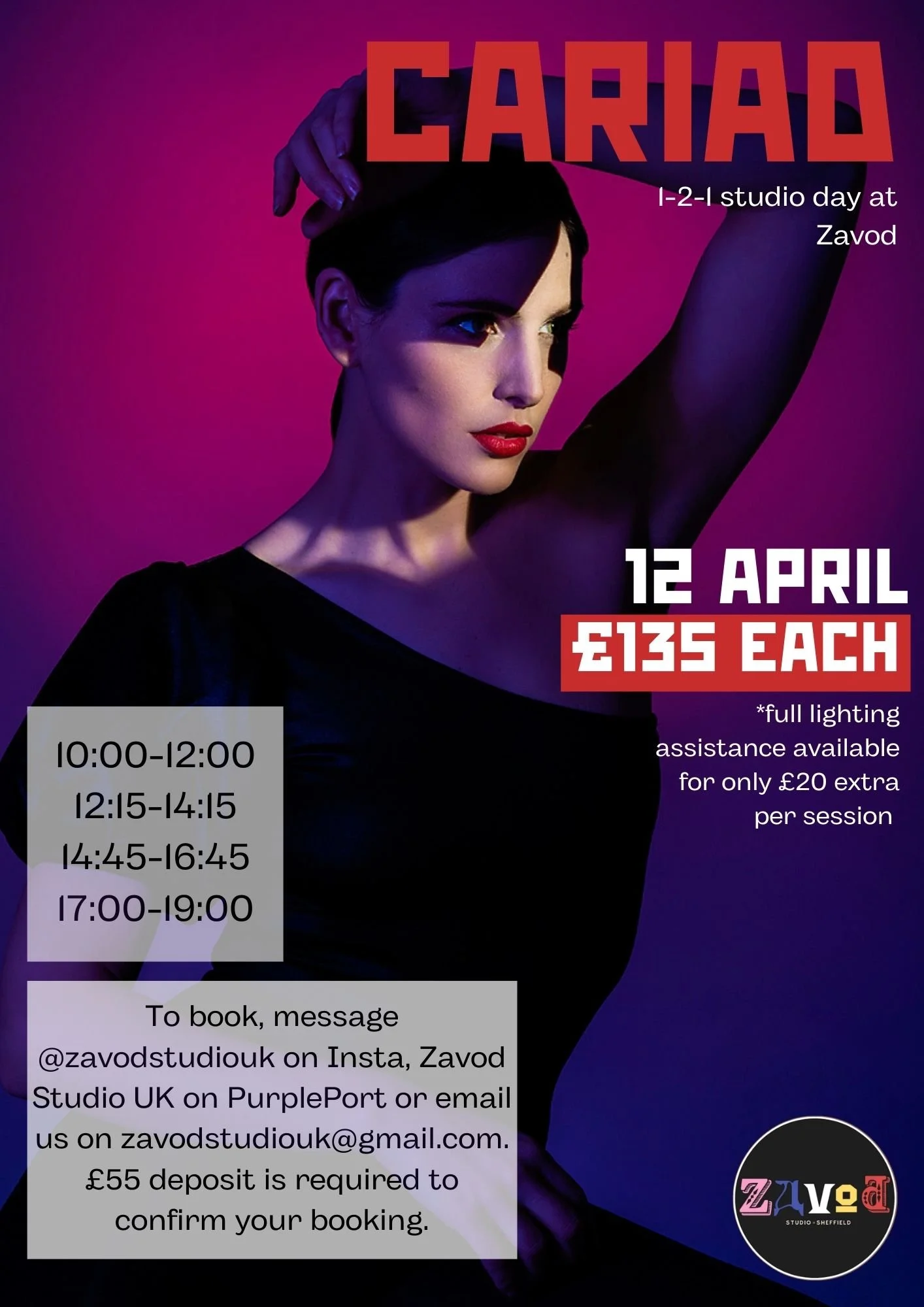 She will be joining us for a full day on 12th of April and as usual, we offer four 2-hour slots throughout the day where you will be working with Cariad on 1-2-1 basis. A full lighting assistance is available at hand too, making this event a perfct opportunity for beginners as well as the pro’s. Don’t miss out, we are convinced these will sell out quick as all of our events do :)