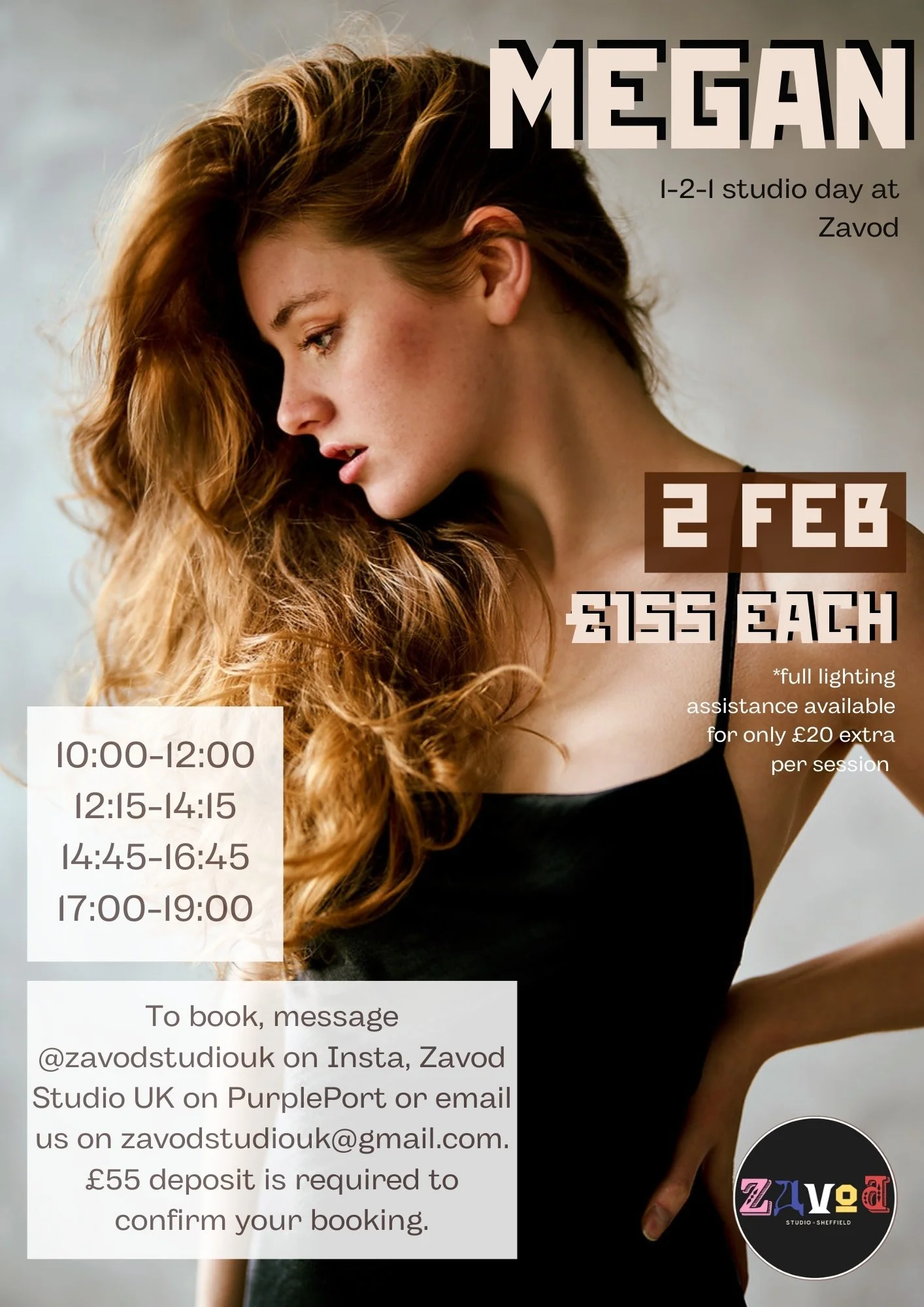 Graceful, poised, professional and entusiastic. We can’t believe we secured this booking with a model in such demand… The talented Megan is coming to Zavod on 1st AND 2nd February! Although this will be her first studio day with us, she has visited the studio before and we have seen her in action. Can’t wait to host this one!