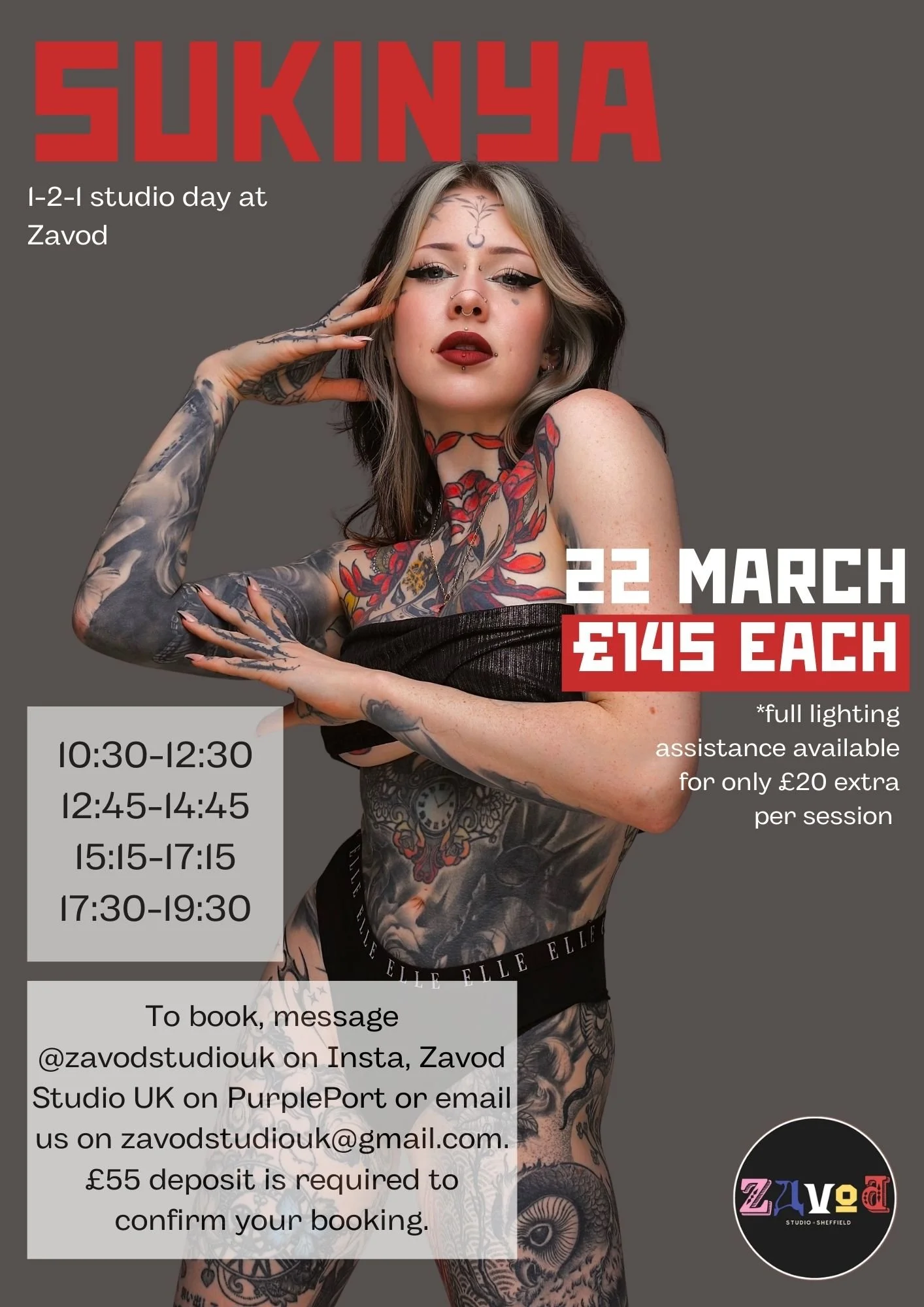 Please welcome an exciting new face to Zavod, Sukinya, a creative powerhouse! Sukinya is an alternative fashion model and will be traveling to us for this 1-2-1 studio day from London. She is known for creating unique shoot concepts specialising in fashion, editorial and cosplay. We can just tell this will be an amazing creative day at the studio - can’t wait to host this one on 22 March.
